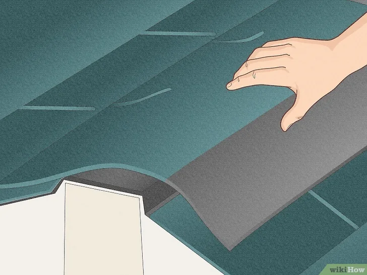 Bend single-tab shingles over the ridge or use special ridge shingles. Then, starting at the end, place a bead of asphalt under the first shingle to hold the tab down. After that, nail each shingle so that the next will go over the nails by around an inch.